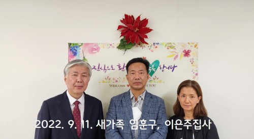 2022년 9월 11일 새가족 임훈구, 이은주집사 작성자신목교회 등록일 22-09-12 조회504회 이름신목교회 본문 2022. 9. 11일 새가족 임훈구, 이은주집사 스스로사랑하고 축복합니다. 2023년 새가족 4월 2일, 23일 새가족 봉학근성도, 이유정성도 2022. 5. 15일 새가족 (이근식집사, 경은순권사) 목록